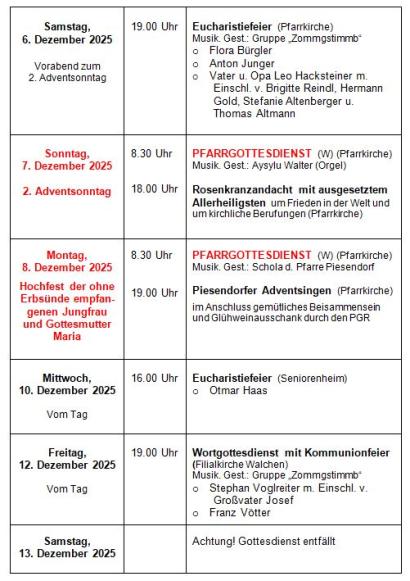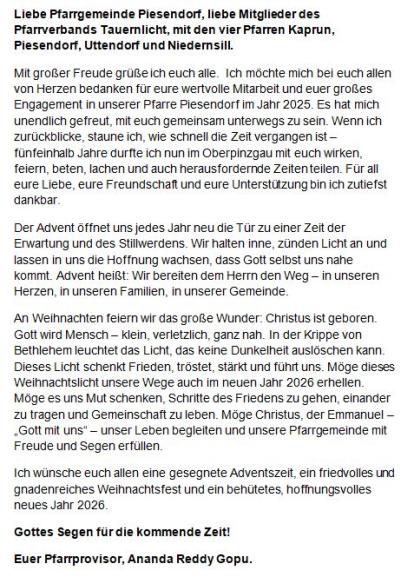Piesendorfer Pfarr-Info Nr. 251 (30. November 2025)