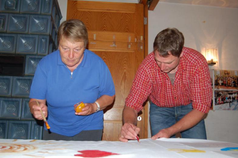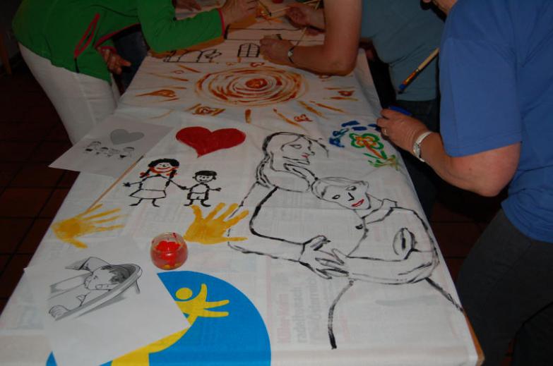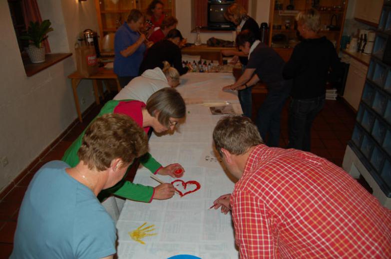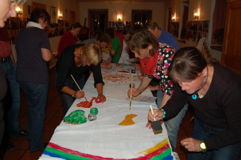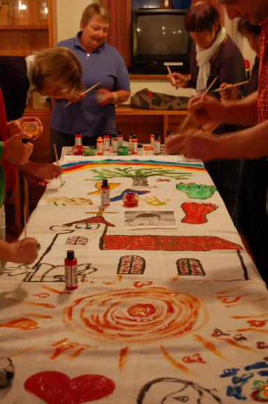 Für das Generationenfest 2011 haben die Pfarrgemeinderäte voller Kreativität und mit künstlerischem Engagement eine große "Lebensfahne" gemalt. Hier einige Fotos davon:
