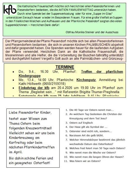 Piesendorfer Pfarr-Info Nr. 254 (29. März2026)